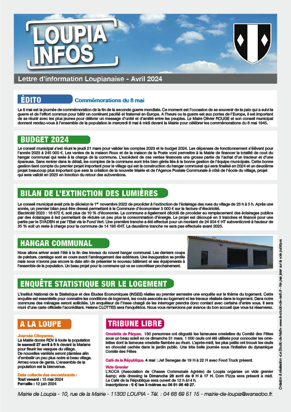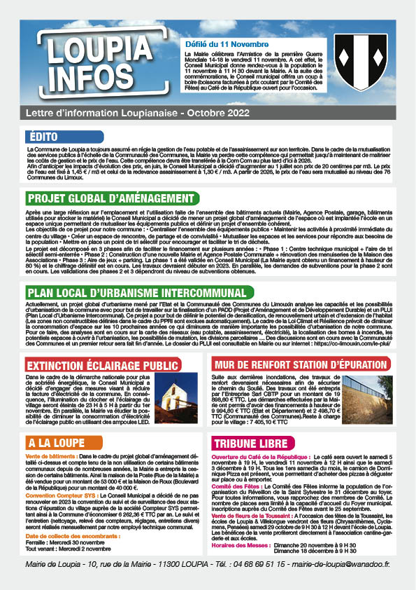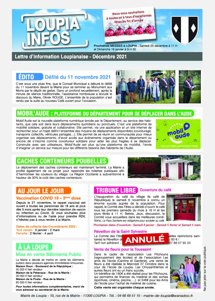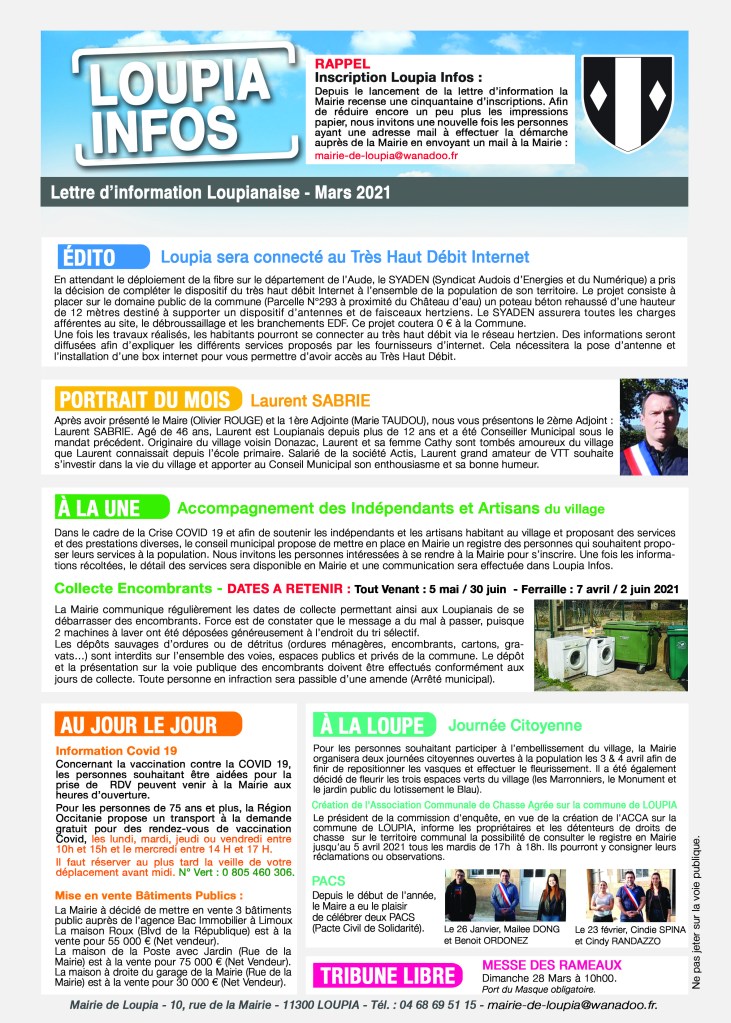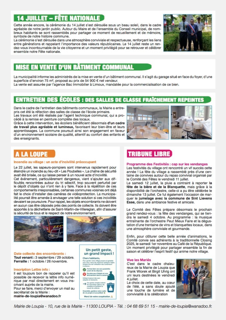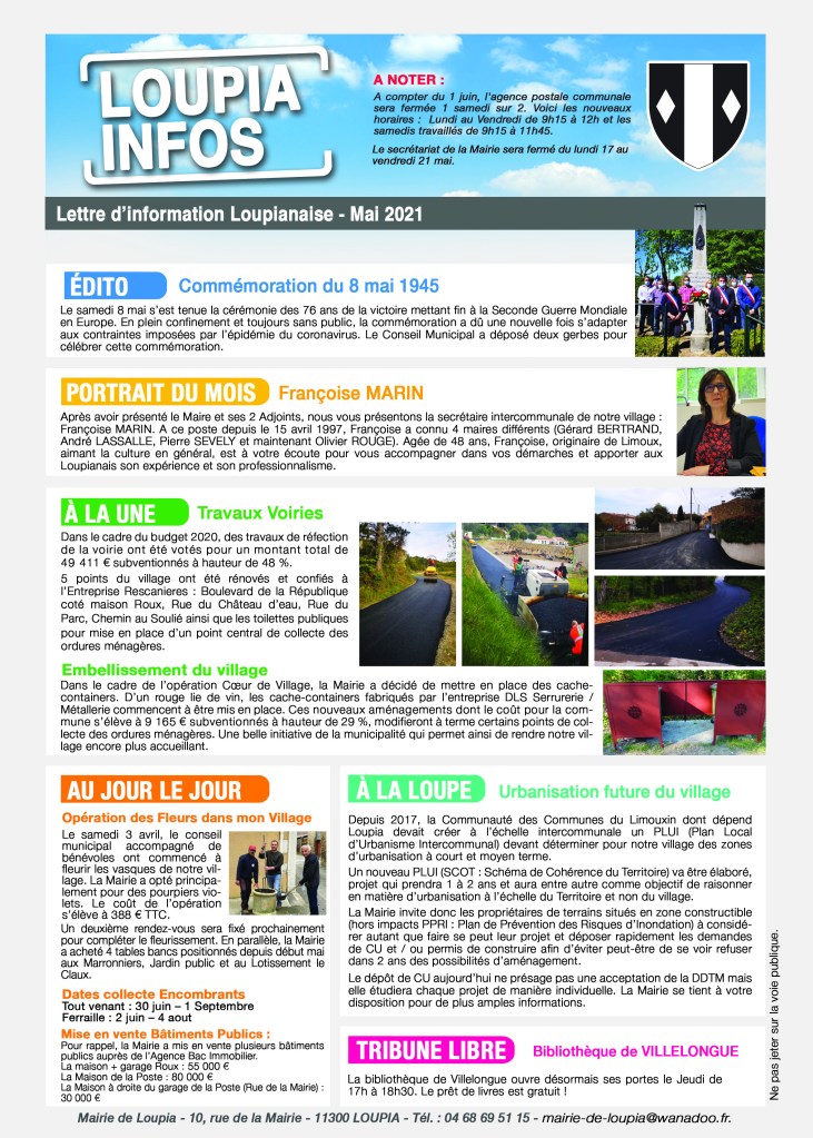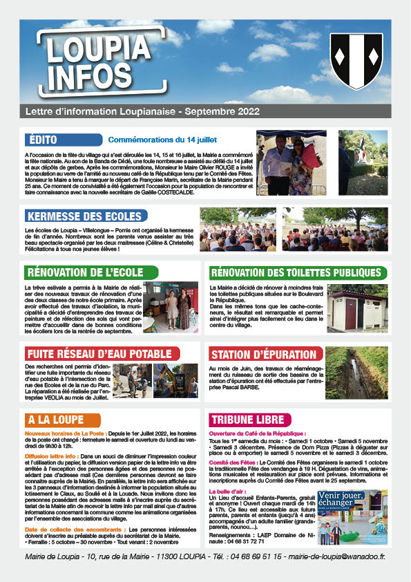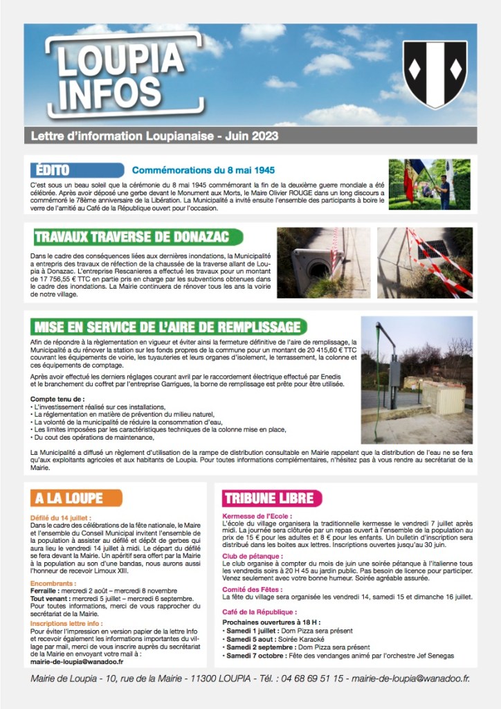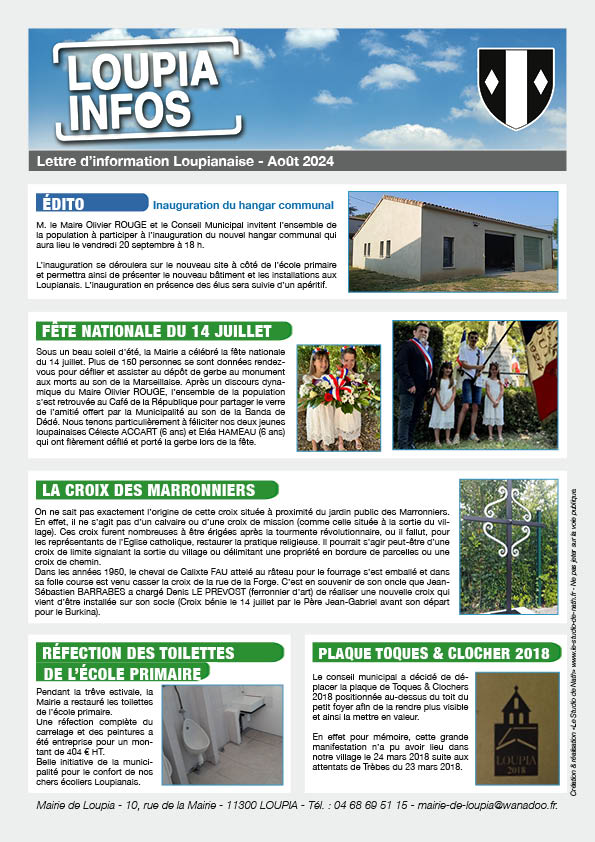 Loupia Infos Compte tenu de la crise sanitaire, la Mairie de Loupia a célébré le 14 juillet à huis clos Partager : Partager sur X(ouvre dans une nouvelle fenêtre) X Partager sur Facebook(ouvre dans une nouvelle fenêtre) Facebook J’aime chargement…